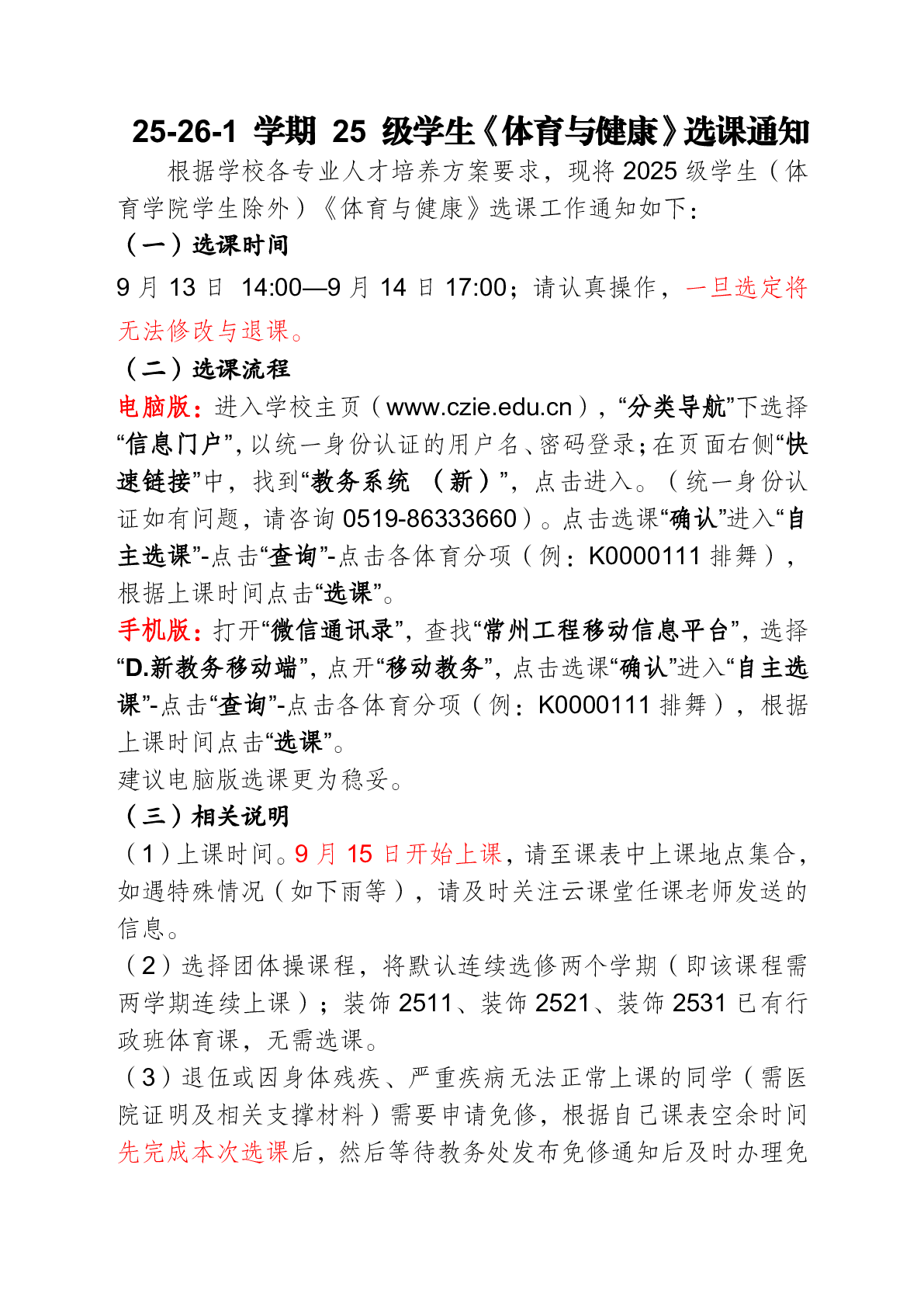 25-26-1学期25级员工《体育与健康》选课通知