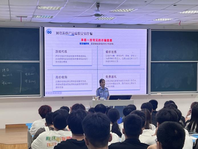 接着,活动进入防诈骗专题环节。南夏墅派出所民警以“守护青春,拒绝诈骗”为主题,为师生们带来了一场精彩纷呈的防诈骗知识讲座。民警通过播放真实案例视频、现场模拟诈骗场景、发放防骗手册等多种形式,详细揭露了网络诈骗、电话诈骗、校园贷陷阱等常见诈骗手段,并传授了识别诈骗、防范诈骗的实用技巧。民警还提醒师生们要保持警惕,切勿轻信陌生人的诱惑,遇到可疑情况要及时报警,用法律武器保护自己。