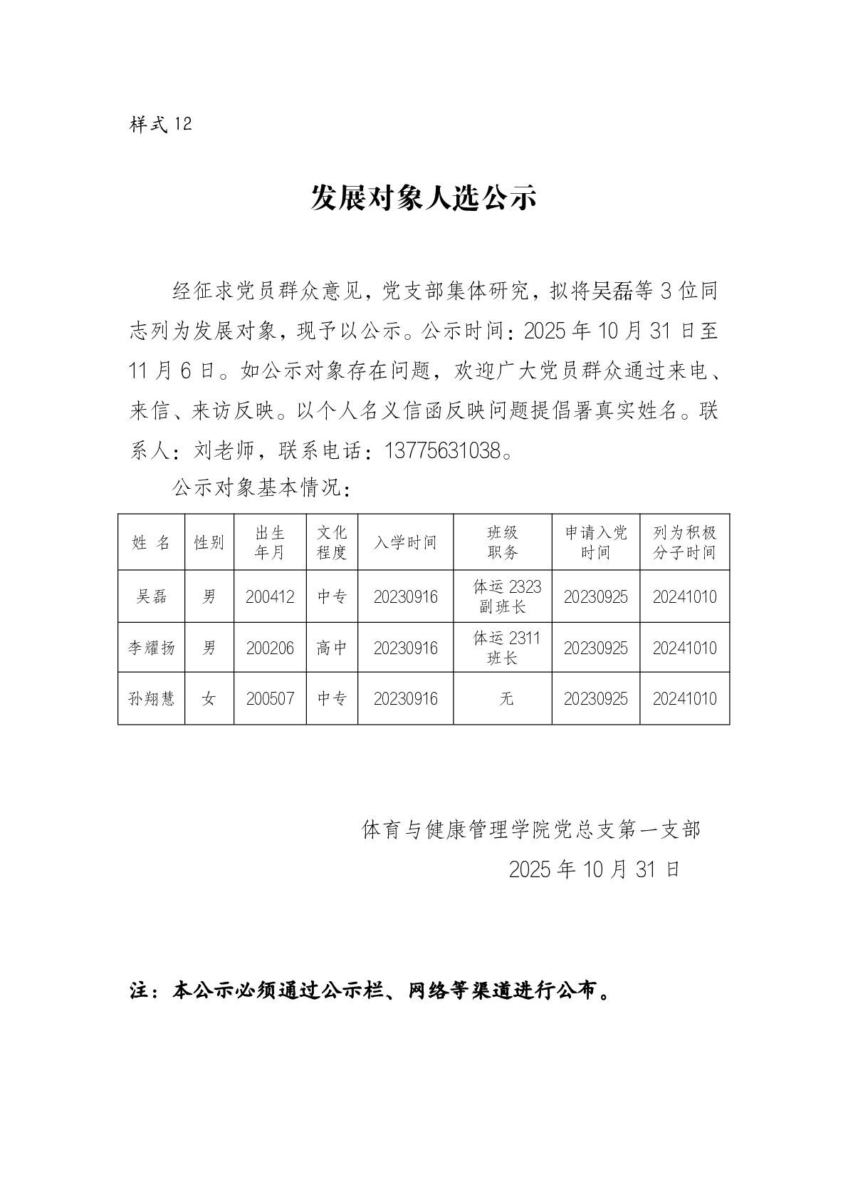 发展对象人选公示